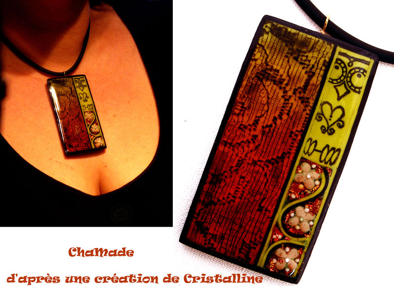 Le collier de Mumu (je comprends pas, il se met de travers ! j'ai pourtant tout essayé ! Le mieux, c'est d'aller le voir sur son blog ;-)))) . Le collier d'Elena :